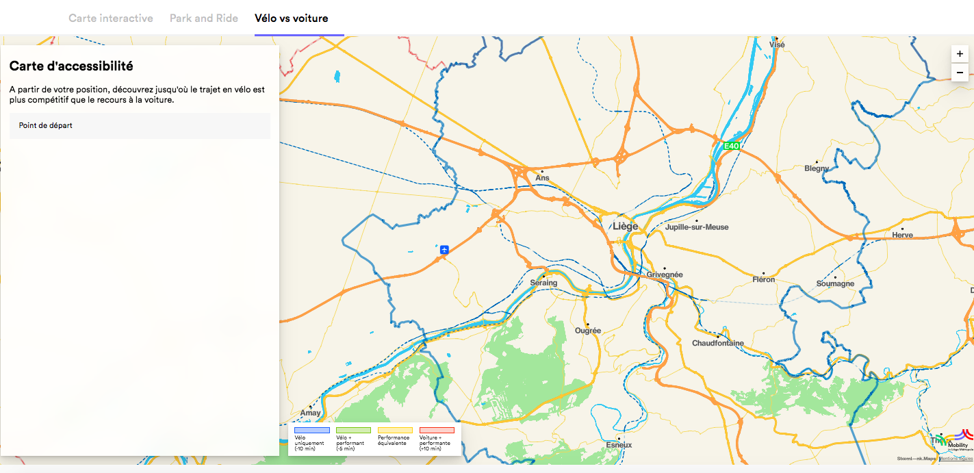 4. La carte “Vélo vs voiture” de Mobility in Liège Métropole